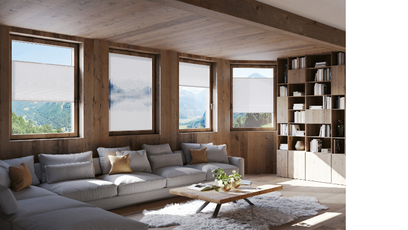 Zudem reduziert das Waben-Plissee den Schall im Raum um bis zu 45 Prozent, was in großen Räumen optimal zu einer angenehmen Akustik verhilft.