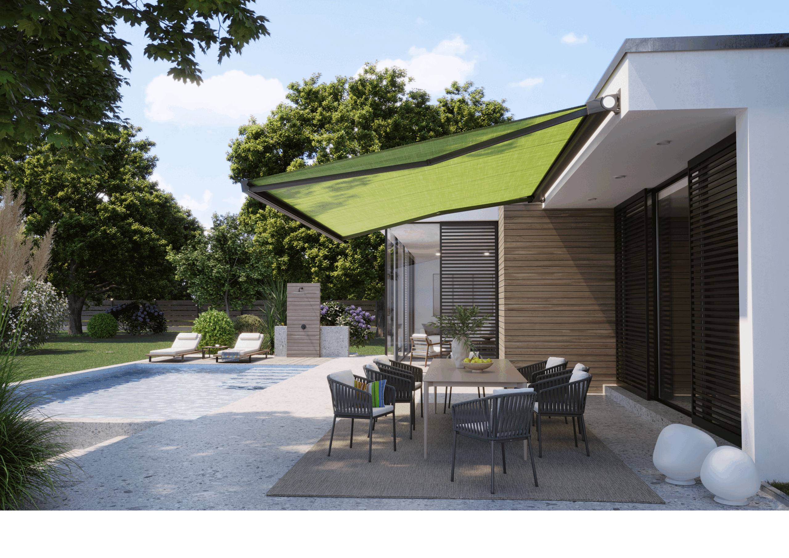 Markisen sind längst mehr als einfacher Sonnenschutz. Sie überzeugen durch Designvielfalt und Farbvergnügen und setzen am Gebäude sowie im Außen-Raum funktionale Ästhetik-Statements.