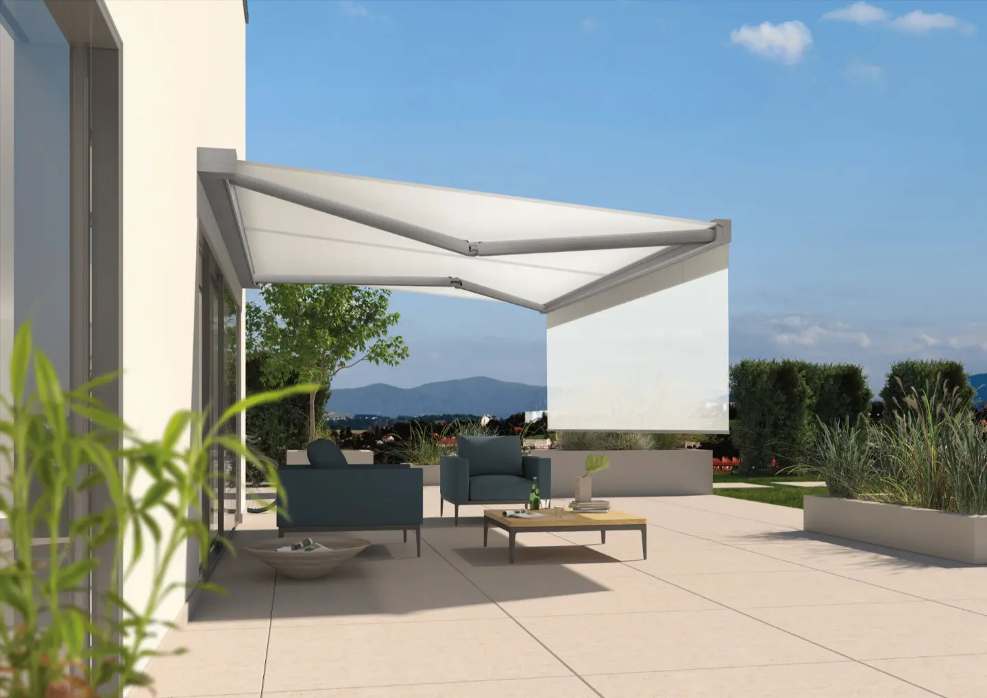 Moderne KASSETTENMARKISEN – schützen das Markisentuch bei eingefahrenem Zustand vor jedem Wetter.
